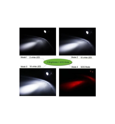 • Lampara Led Cabeza 18 Leds Ajustable Minero Campismo Caza