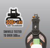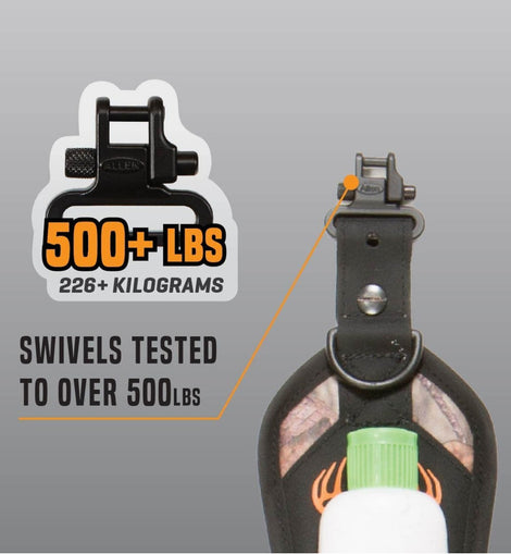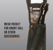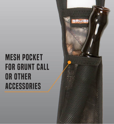 La eslinga Hypa-Lite Bruiser es una eslinga diseñada pensando en la caza del venado cola blanca. El arnés comienza con una construcción de hypalon ultraduradera y liviana con espuma moldeada de baja densidad y un respaldo antideslizante. La parte delantera de la eslinga cuenta con camuflaje Mossy Oak Break-Up Country en tela silenciosa, además de un bolsillo de malla elástica para una botella de parabrisas o una llamada de gruñido y un pequeño bolsillo de neopreno para un paño de limpieza de lentes u otro accesorio pequeño. El cuerpo de la hombrera es de 14? largo por 3.25? de ancho, y la eslinga tejida ajustable es de 1? ancho. Incluye anillos en D para sujetar accesorios, una hebilla de bloqueo de escalera ajustable y eslabones giratorios probados hasta 300 libras.