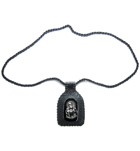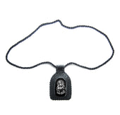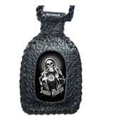 Escapulario de Piel Hecho a Mano con Santa Muerte Blanca.