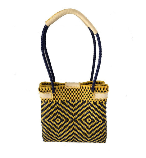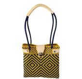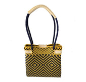 1 Bolso de mano de toquilla artesanal HECHO A MANO color Amarillo con Azul Marino