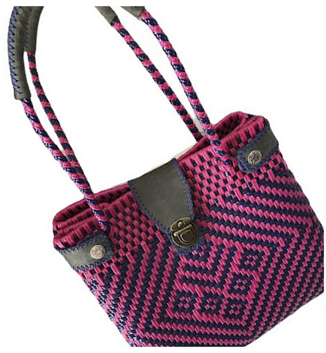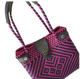 Bolso Tejido a Mano Auténtico Colorido Artesanal en plástico Toquilla reciclada.