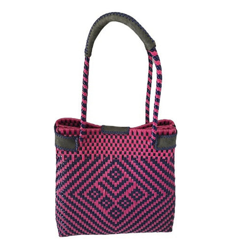 Piel bolso de playa y mano Hand Woven Plastic Tote Handbag Mixte Woven. Bolso tejido mexicano, Bolso de playa, Bolso de verano, Bolso de playa Morado,Rosa y Dorado. Tote resistente al agua.