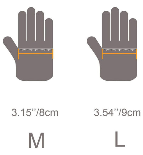 Dos Tamaños para Elegir - Extiende tu mano plana. Con una regla, mide la mano justo debajo de los dedos, pero por encima del pulgar. También puedes consultar la imagen. Tamaño de la mano: M: 3.54/9 cm; L: 3.94/10 cm. El tamaño M generalmente es para manos de hombres, el tamaño L generalmente es para manos grandes de hombres.